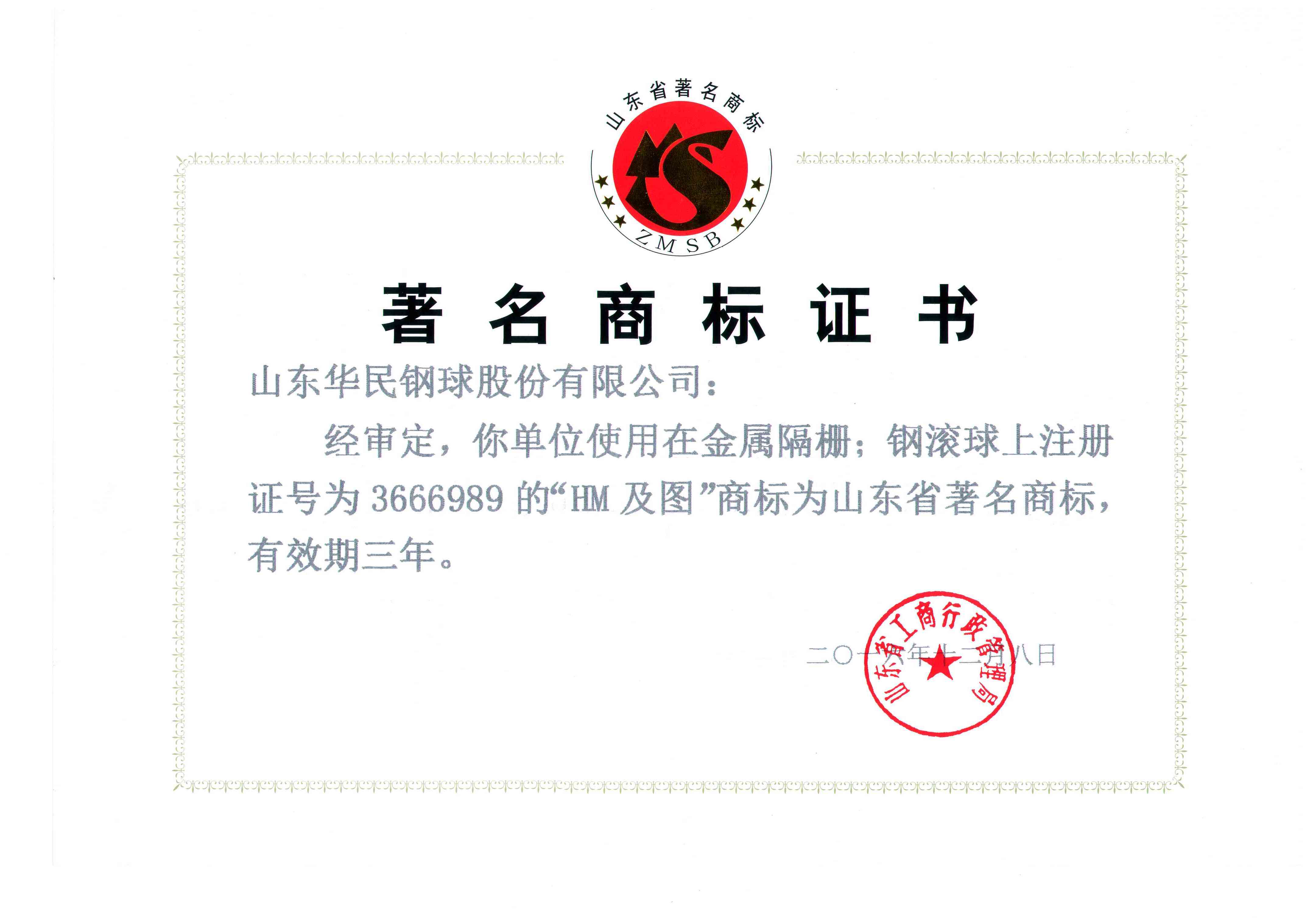 著名商標(biāo)證書(shū)
