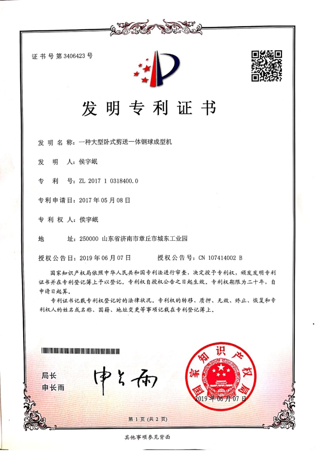 一種大型臥式剪送一體鋼球成型機(jī)